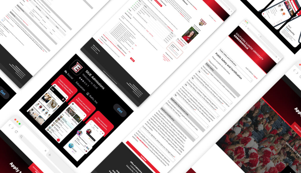 As a digital designer, I unified 3rd-party applications with the SIUE brand to foster institutional trust during the transition between digital utilities. By leveraging advanced browser developer tools, I successfully adapted the Slate CRM into SIUE’s digital ecosystem. Despite the constraints of a fixed framework, I engineered a more focused user flow by eliminating ‘off-ramp’ distractions to directly increase application conversions.